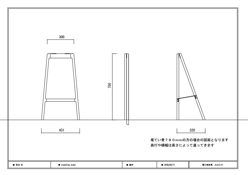 (尾てい骨780mmの方の場合の寸法となります)